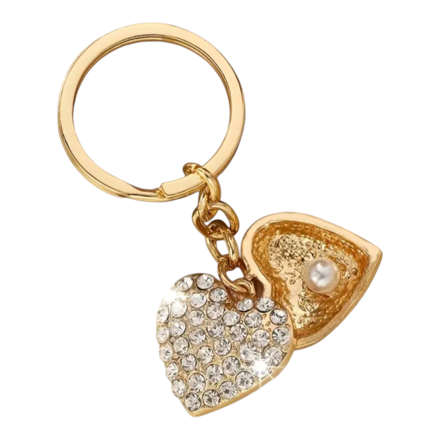 Elegant hjerteformet nøkkelring med rhinestones og falske perler - legering, perfekt pynt til til heklede vesker m.m