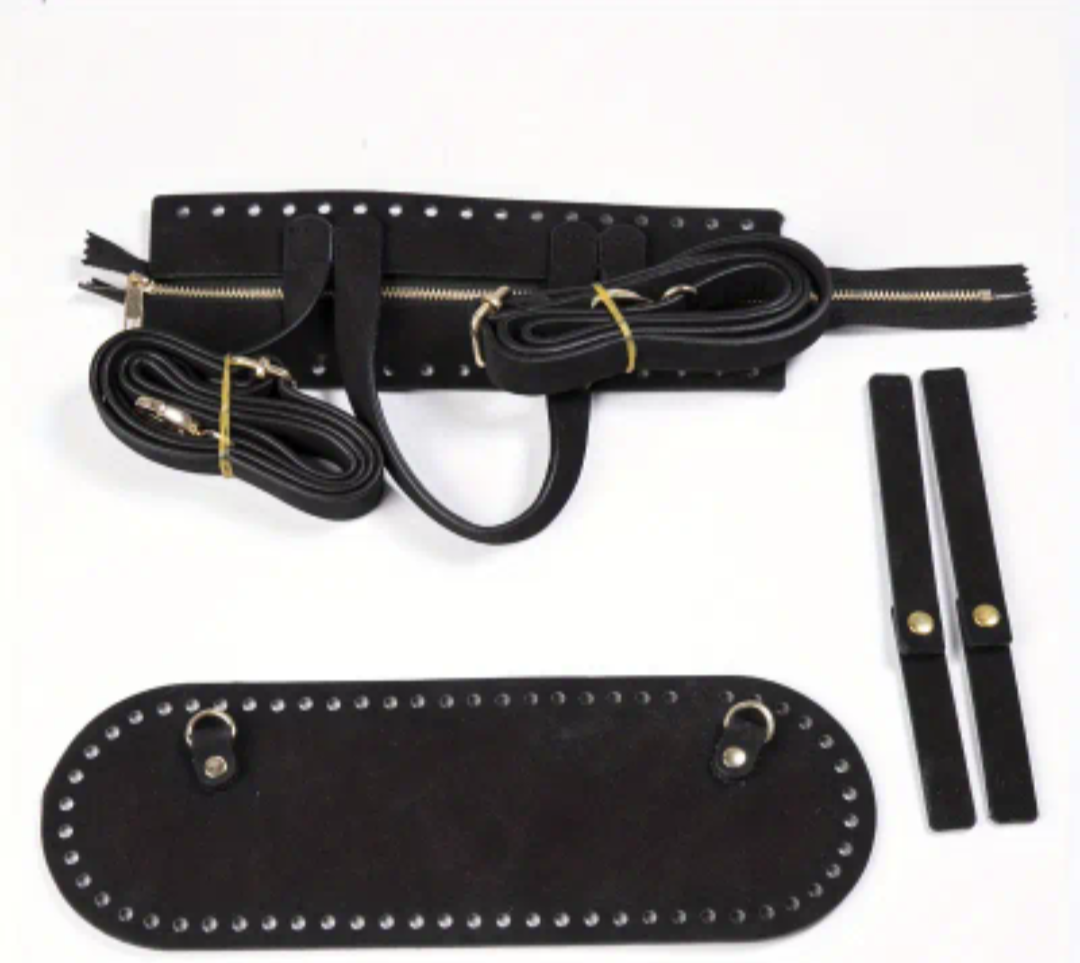 1 sett håndlaget vevd ryggsekk matriale i mykt kunstskinn.